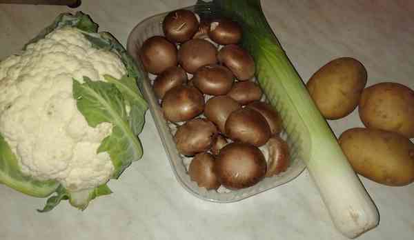 Wir nehmen heute Pilze, Lauch, Kartoffeln und Karfiol. Karfiol ist der Name für Blumenkohl hier zu Lande. Cavolfiore ist der italienische Name.