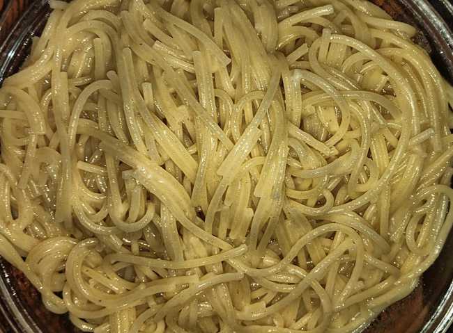 Die Spaghetti werden nach dem Kochen in ein Sieb oder den Durchschlag gegeben und nicht abgeschreckt. Der Blick unserer Frauen reicht.