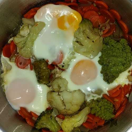 Das Gemüse kann frisch oder gefroren sein. Wir braten zuerst in Butter – Zwiebel und Karotten an. Löschen mit etwas Brühe ab. Würzen mit Salz, Pfeffer, Zucker und Kräutern der Wahl. Danach geben wir die Eier dazu und rühren nicht um! Deckel drauf, 20 Minuten Stufe 2 Induktion. Die Eier sind damit pochiert. Jetzt geben … Verlorene Eier zu Gemüsepfanne weiterlesen