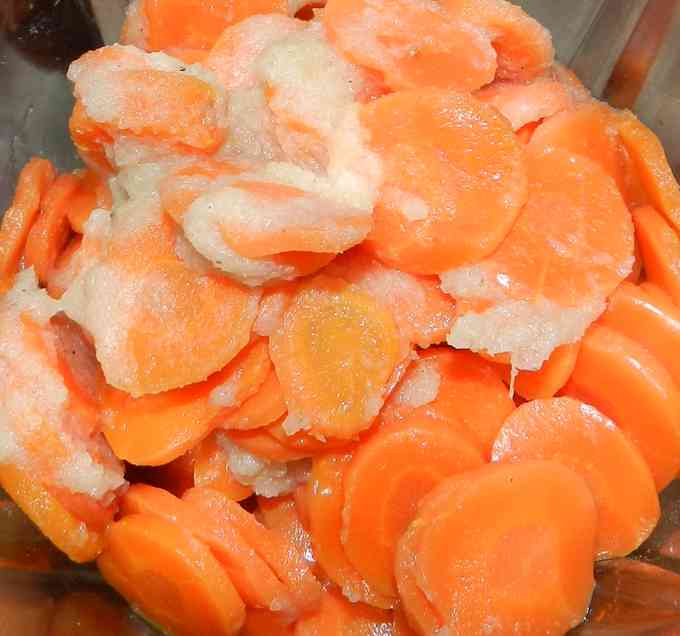 Nach dem Putzen der Karotten mit einem Stahlreiberle, schneiden wir die in recht dünne Rädchen – 0,5-1cm und geben die in den Blixer.
